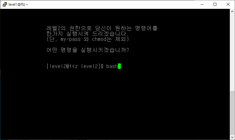 level2 권한으로 bash를 실행시켜 my-pass 명령어를 입력하는 방법으로 암호를 획득하였습니다.