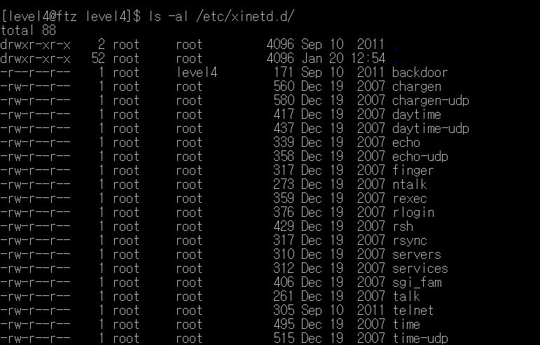 ls -al 명령어를 통해 /etc/xinetd.d/에 backdoor 파일을 확인합니다.