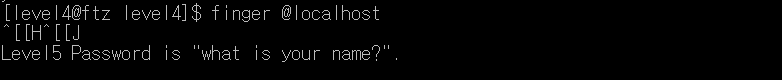 finger 명령어 @localhost 를 실행해주면, finger 서비스가 실행되면서 level 5의 권한으로 backdoor 파일을 실행되어 level 5의 password가 나옵니다.