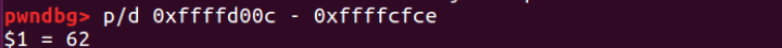 - Return address(0xffffd00c) - buf 변수의 시작 주소 (0xffffcfce) = 62