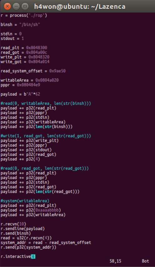 read(0,writableArea,len(str(binsh)))