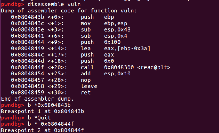 - 0x0804843b : vuln 함수 코드 첫부분