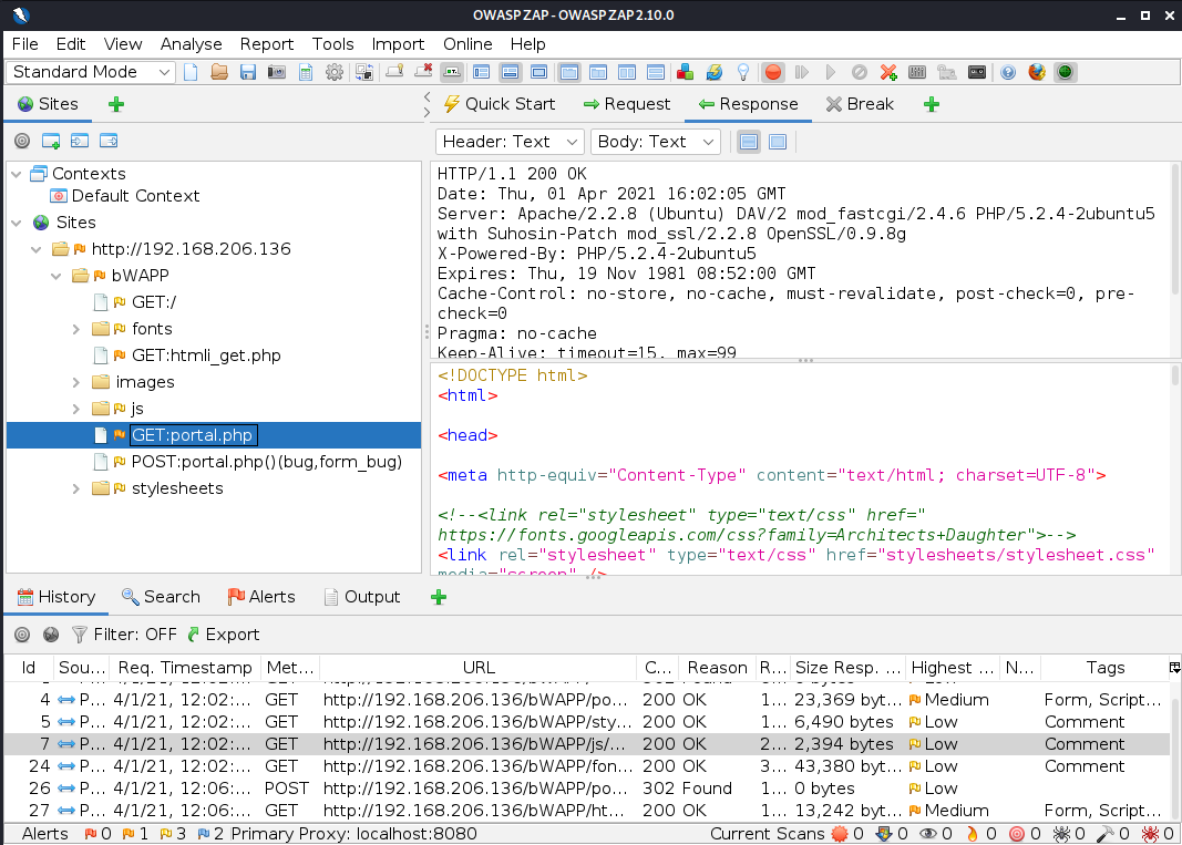 3. firefox를 새로고침 한 후 owasp zap을 보면 패킷들이 오간 것을 확인할 수 있다.