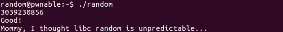 먼저 rand 함수의 결과로 반환된 값을 random 변수에 저장한다. 그리고 scanf를 통해 입력받은 key값과 random 값을 xor 연산을 해 0xdeadbeef와 같은 값이 되면 system 함수가 실행된다.