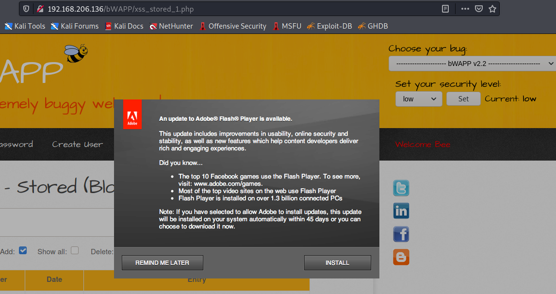 이제부터 BeEf 를 이용해 Bee-box 를 대상으로 XSS 취약점 공격을 실습해보겠다.