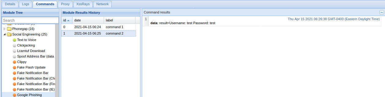 방금 입력했던 id, password 정보가 공격 결과로써 저장된 것을 확인할 수 있다.