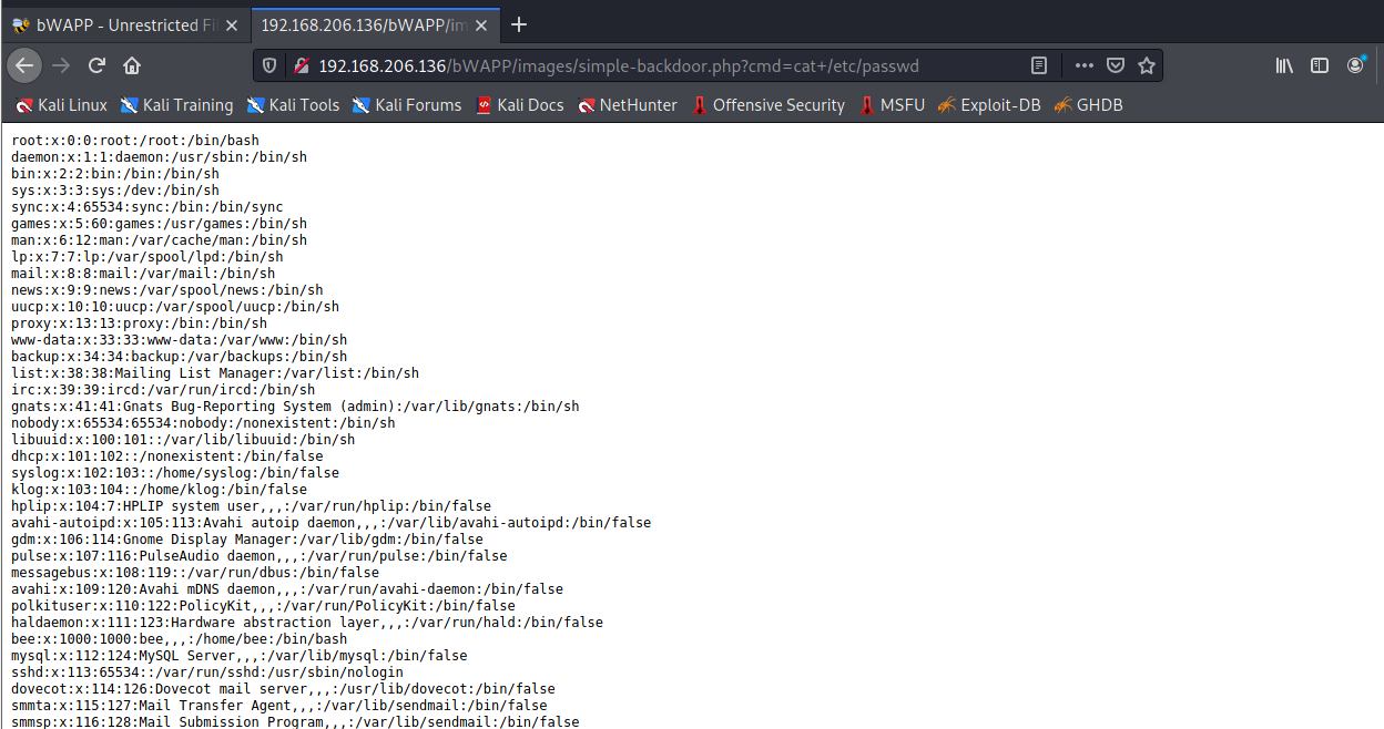 실습 환경 : kali-linux-2021(공격자 pc) -> BeeBox