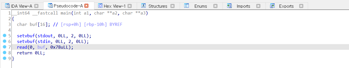 read 로 입력을 받을 때 bof 가 발생한다.