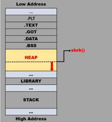 -> brk syscall을 사용하여 program break 위치를 증가시킴으로 확장된 영역이다.( 데이터 세그먼트 영역을 늘렸다는 뜻)