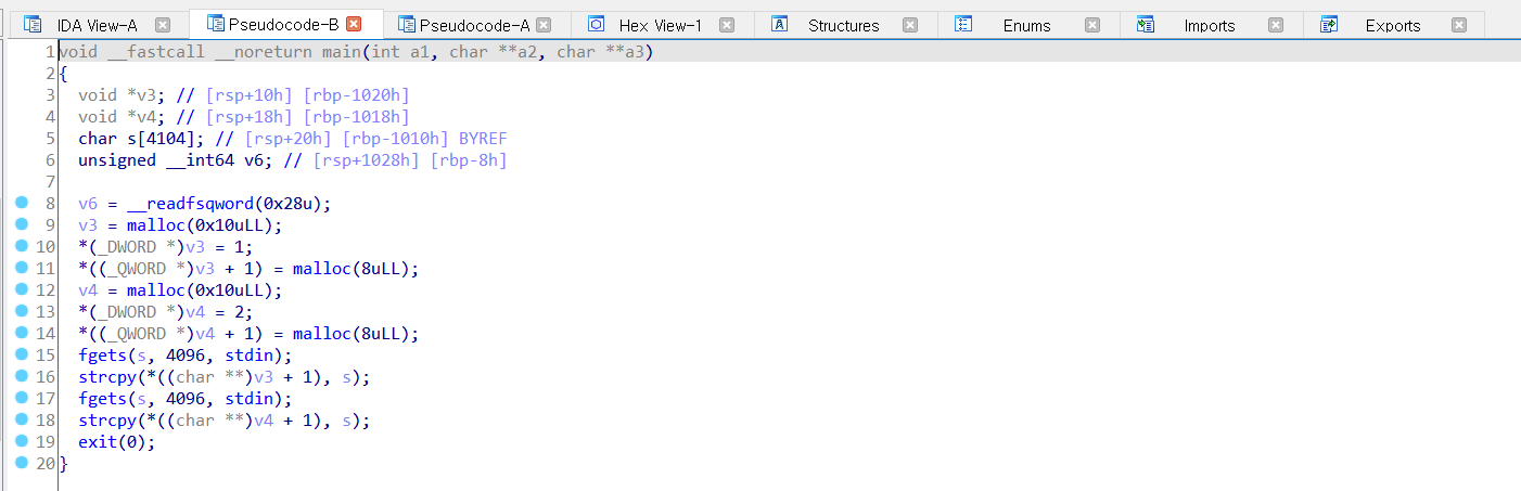 | 2 (v4가 가르키는 힙영역) | malloc(8) 할당한 주소가 담김 |