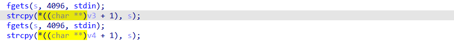 이 부분에서 strcpy 시 overflow 가 두 번 발생한다.