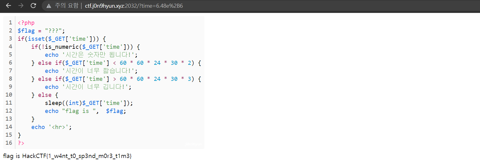 지수표기법으로 변환한 값을 입력하면 대략 6초뒤에 플래그가 뜬다.