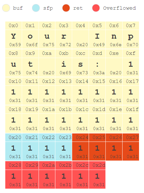 read 함수에서 받는 입력이 32바이트를 넘진 않지만, sprintf 함수를 통해 버퍼에 값을 쓸 때 "Your Input is: "문자열을 추가한다는 사실을 생각해야 한다. 만약 buf에 31바이트를 꽉 채운다면 "Your Input is: " 문자열이 앞에 붙어 총 길이가 32바이트를 넘게 된다.