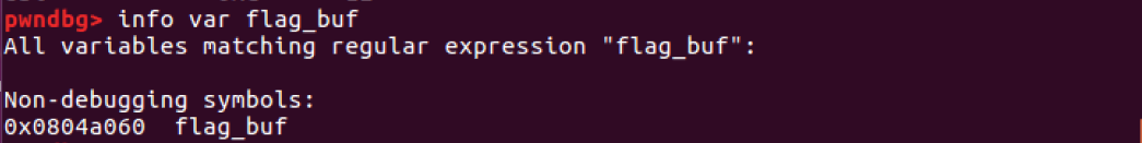"%n" 포맷 스트링을 이용하면 원하는 주소를 참조하여 값을 쓸 수 있다는 것을 알았다. 그러나 fsb1에서는 전역 변수 flag_buf에 저장된 내용을 읽어야 한다. flag_buf의 주소는 심볼을 이용해 gdb에서 다음과 같이 알아낼 수 있다.